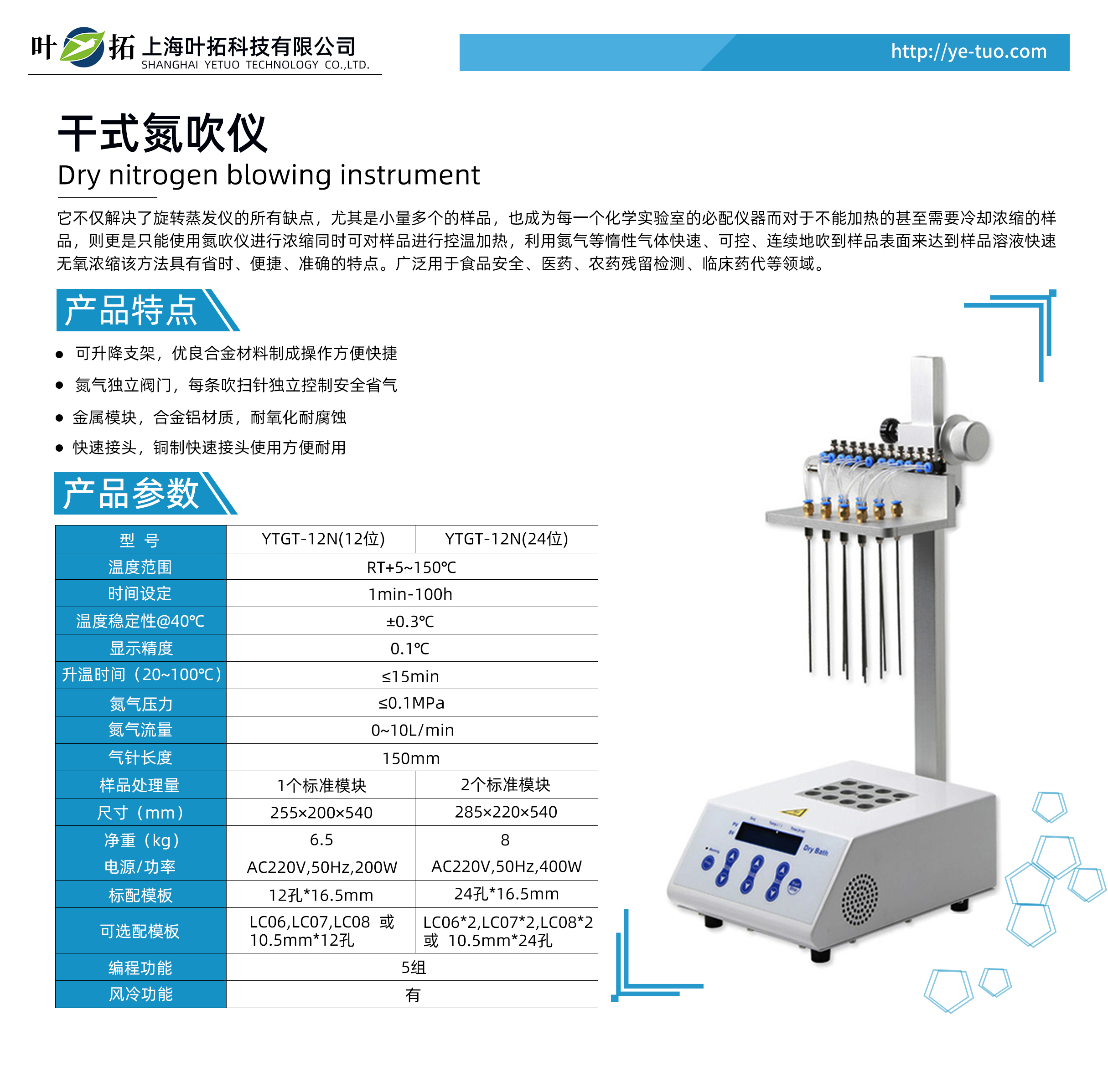 葉拓YTGT-N系列液晶干式氮吹儀產(chǎn)品特點(diǎn):