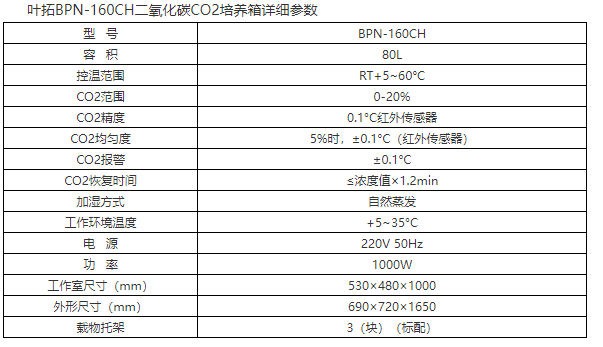 葉拓BPN-160CH二氧化碳CO2培養(yǎng)箱產(chǎn)品特點(diǎn)