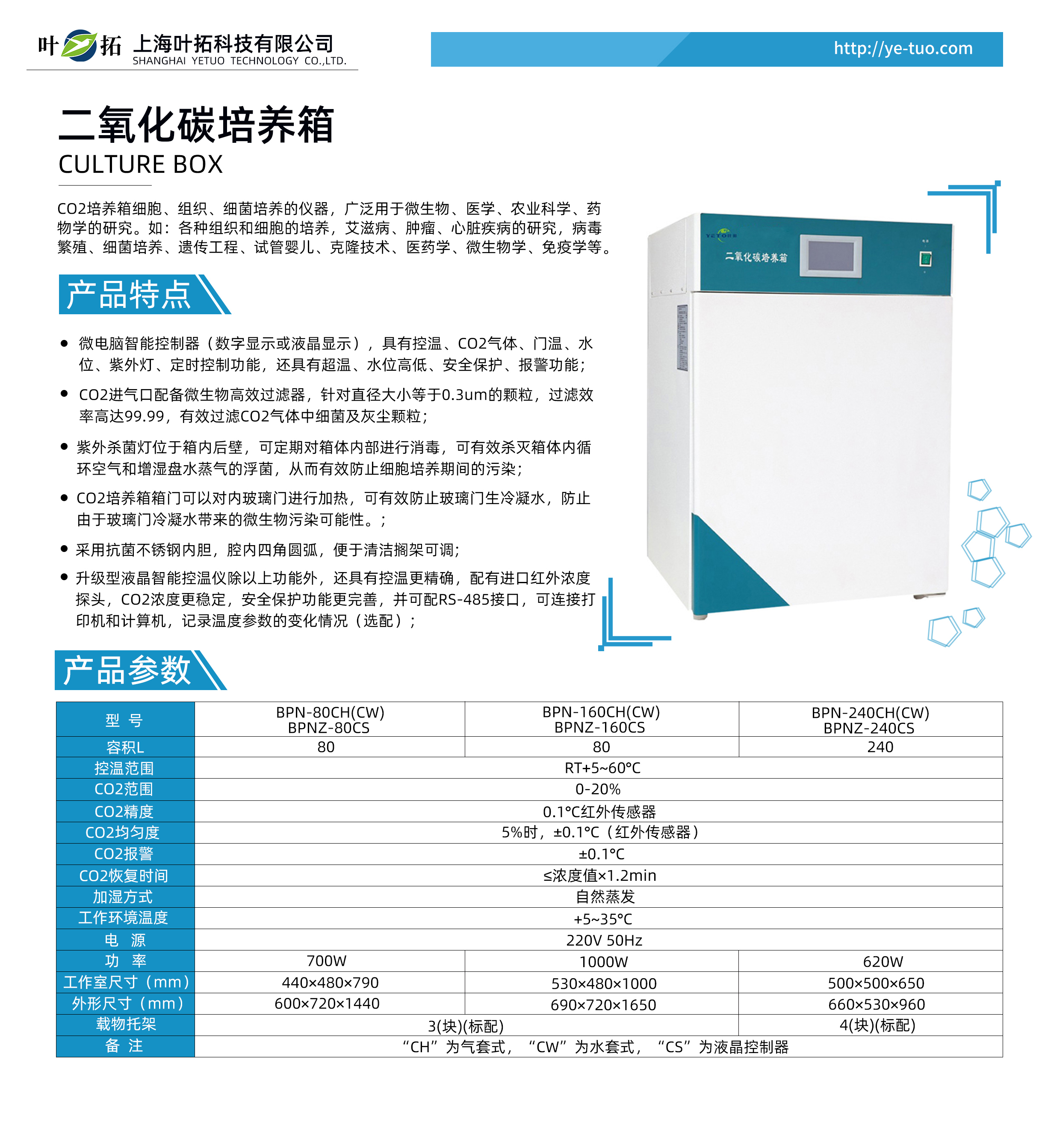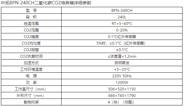 葉拓BPN-240CH二氧化碳CO2培養箱產品特點