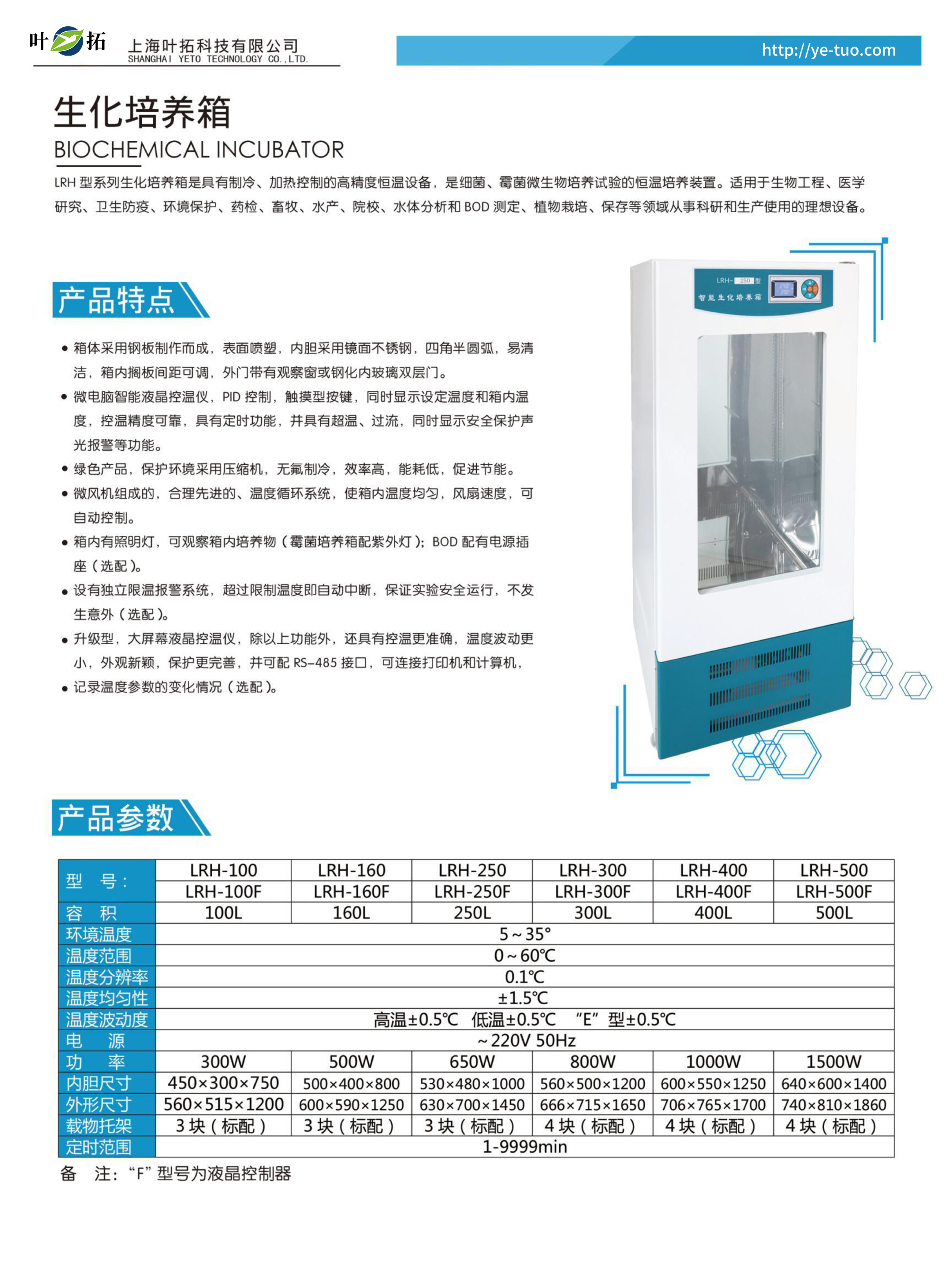 LRH型系列生化培養箱是具有制冷、加熱控制的高精度恒溫設備,是細菌、霉菌微生物培養試驗的恒溫培養裝置。適用于生物工程、醫學研究、衛生防疫、環境保護、藥檢、畜牧、水產、院校、水體分析和BOD測定、植物栽培、保存等領域從事科研和生產使用的理想設備。