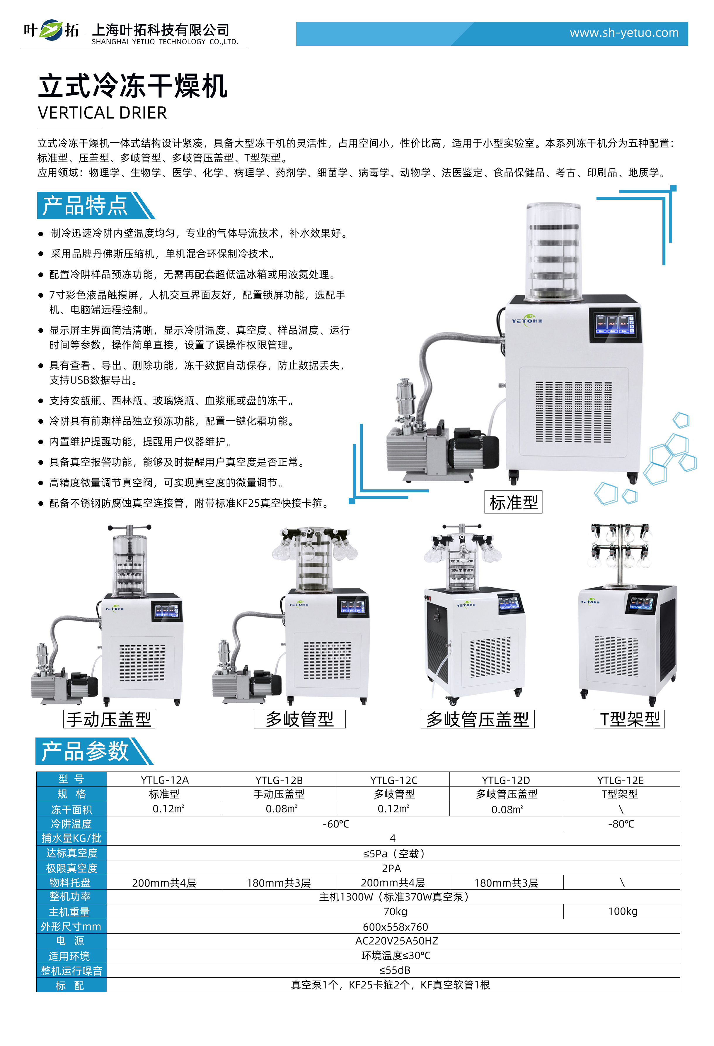 【官網】上海葉拓 YTLG-12系列 凍干機 臺式真空冷凍凍干機