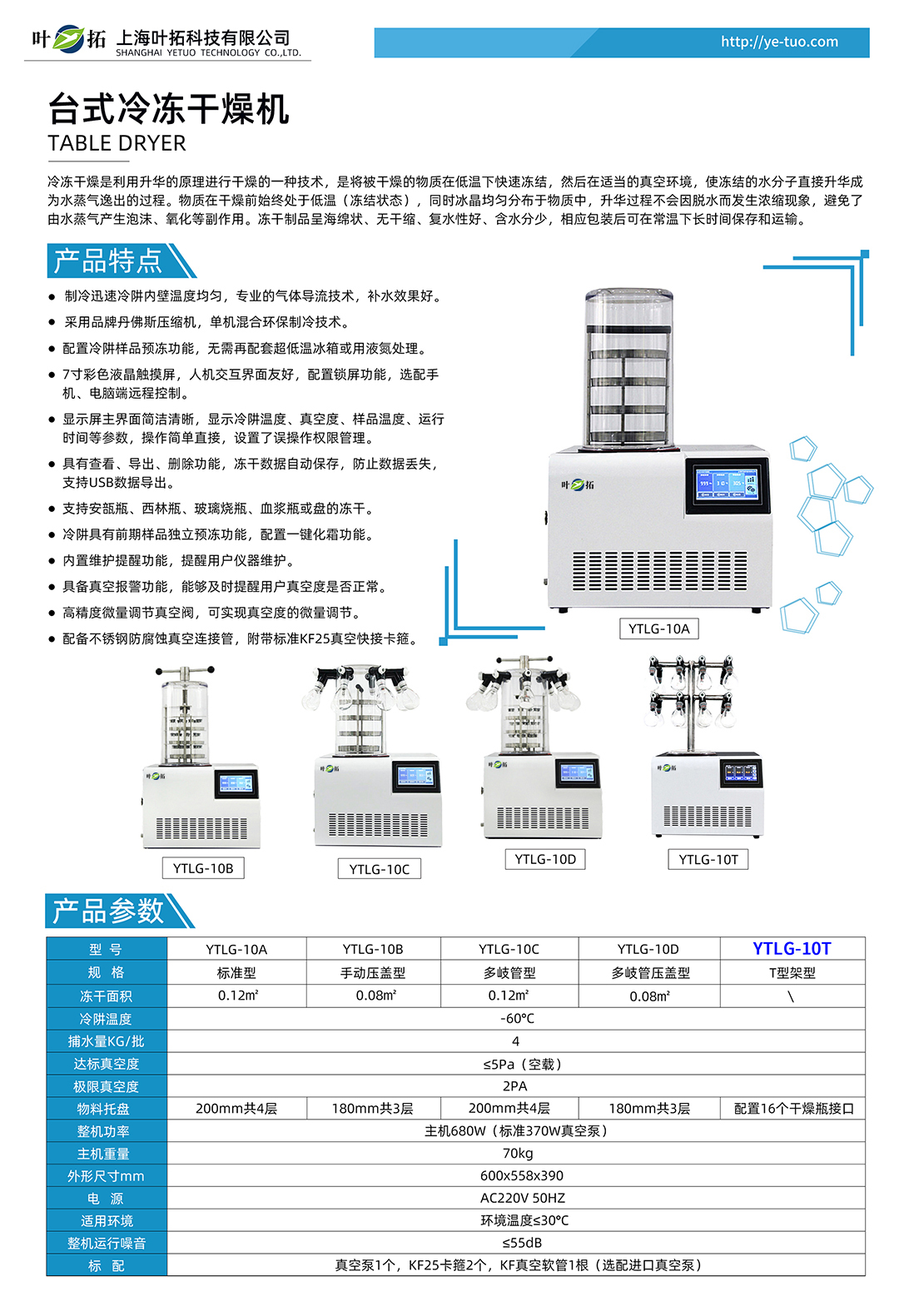 上海葉拓 YTLG-10E 臺式凍干機的產品特點: