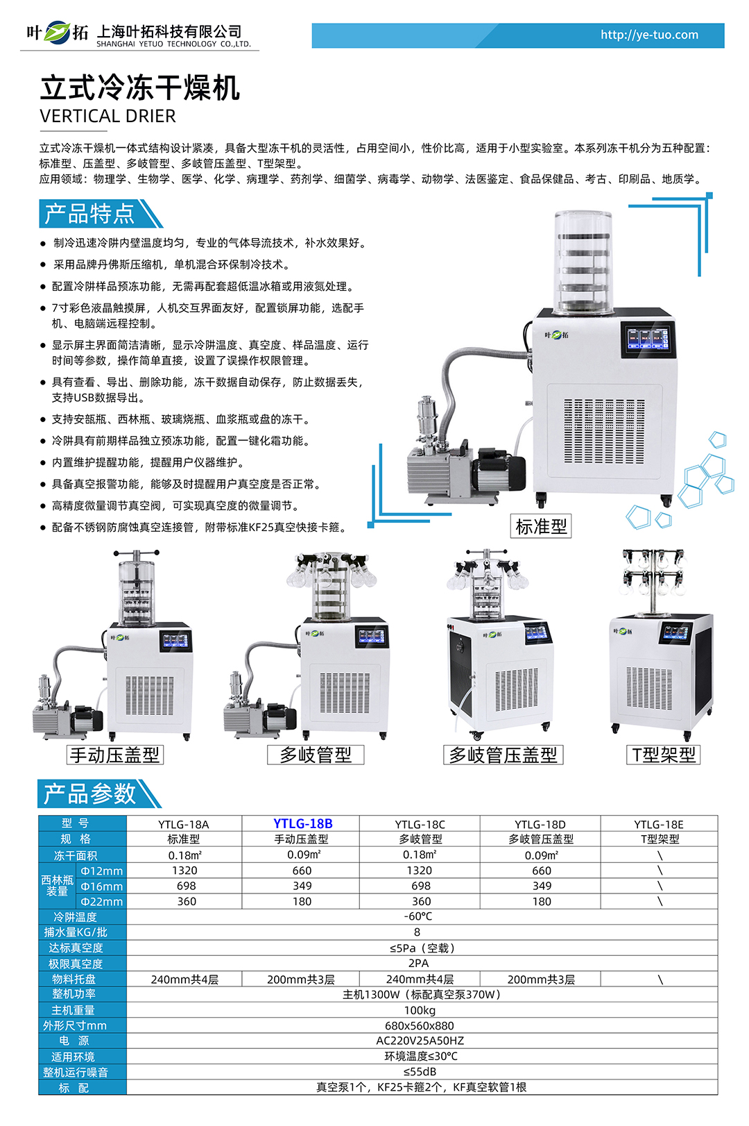 上海葉拓 YTLG-18B凍干機 立式真空冷凍干燥機 壓蓋型