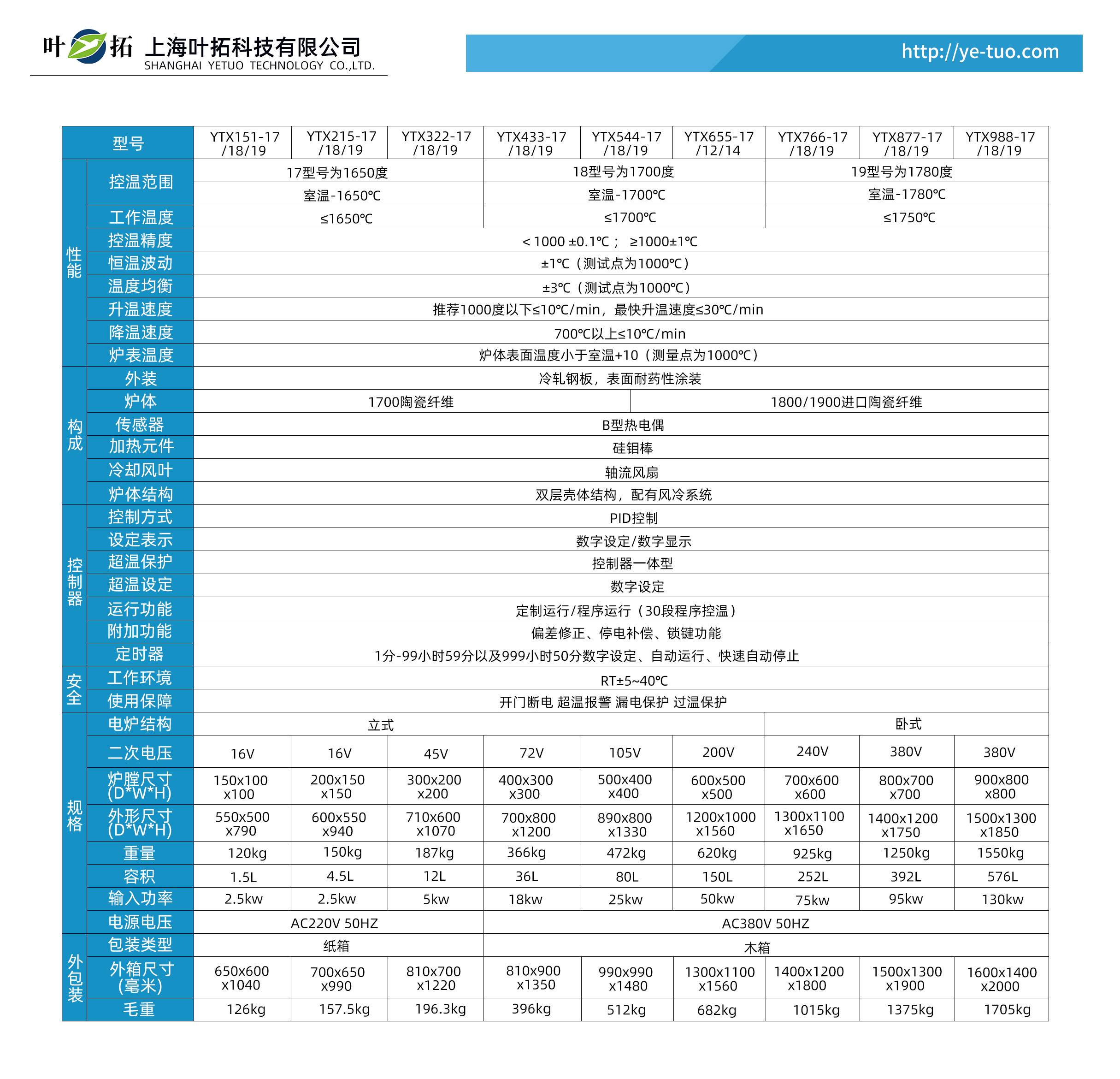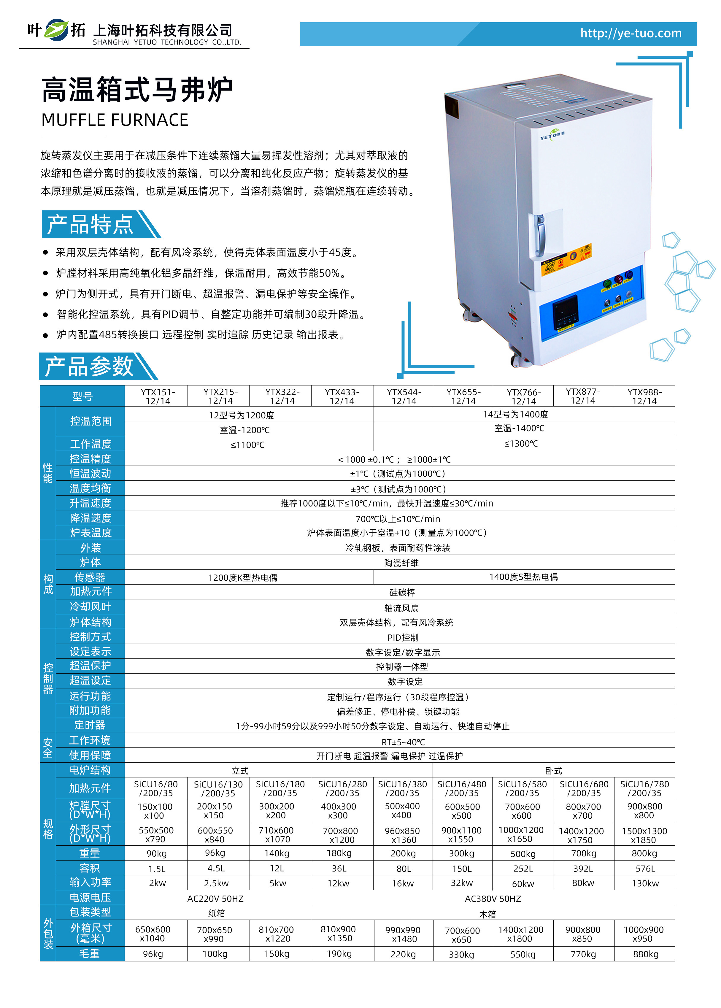 葉拓YTX系列箱式高溫爐產品特點